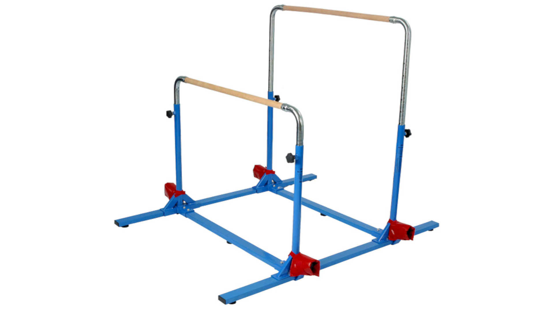 For active families looking to invest in durable, built to last home gymnastics training bar that functions for your kids in more ways than one, this is the home training bar for you. The 5-in-1 Bar was designed with all of that in mind, and more. Made of heavy grade steel construction and secure fasteners, kiddos will use this bar for strength training, skills, and obstacle course fun. Its hefty steel construction will stand up to all day use. The 5-in-1 has two independent rails that can move close enough to function as mini-parallell bars or, farther apart for creative conditioning and swinging skills. This bar is popular with families with multiple kiddos wanting to join in the fun with solid wood bar that adjusts from 38 inches to 58 inches high. Options galore for a family on the go!