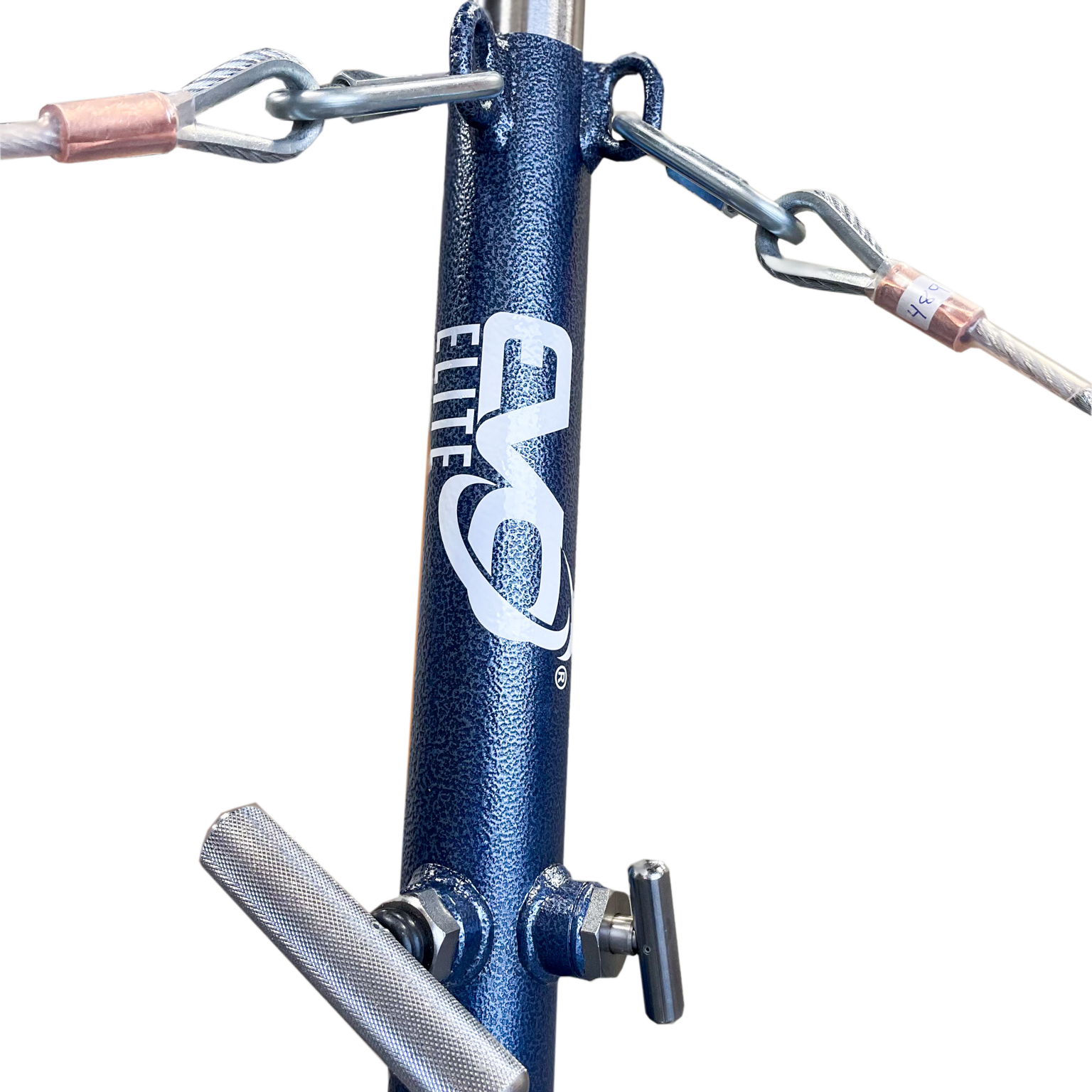 Equipped with the 10 cm extended pistons to accommodate taller gymnasts, dual engraved marking for ease of convenience when adjusting to the ideal height and swiveling tie-downs that ensure load distribution between the cables and floor anchors.