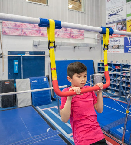 Anyone who loves to swing will love the Adjustable Trapeze Bar! Easy to attach to any bar or set of rings using the adjustable straps, this bar will make obstacle courses, ninja runs, and strength training stations super fun! Gymnasts and fitness enthusiasts will appreciate having a swinging station to improve grip strength, tap swings, kip drills, and flyaways.