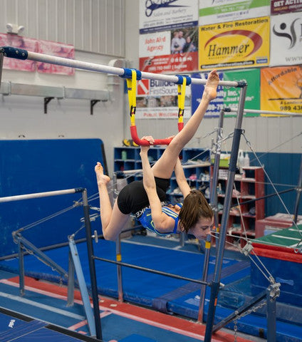 Swing and play with confidence on the Tumbl Trak Adjustable Trapeze Bar! Featuring our signature rounded corners, adjustable straps, and grippy PPR rubber. Turn any bar into a station to improve grip strength, kips, tap swings, flyaways, and more.