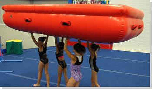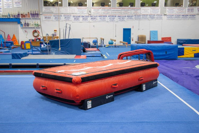 Discover the versatility of the Air Platform Mat, formerly known as the Air Pit. This innovative, inflatable mat is like a really cool, reversible jacket...you can use it 'vinyl-side up' or 'pit-side up', depending on the needs of your gym, clinic or students. Use the Air Platform Mat 'vinyl-side-up' when a platform or flat surface is required, or 'hole-side-up' (holes exposed) to play in, support upright standing for therapy purposes, or as obstacles to jump over.Vinyl-Side-Up Uses:Place additional foam mats on top, creating an instant, easy-to-move resi-mat. It can also be used as aVault Table Station,Downhill Incline (Cheese Wedge), Wall Station, Beam Dismount stations. Please note that the vinyl on this side is not 'inflated'. If you want to use this as a landing surface, we recommend adding a mat to the top surface.Hole-Side-Up Uses:posturing for special needs kids, core strengthening drills, obstacle course, ball pits, fun and games.