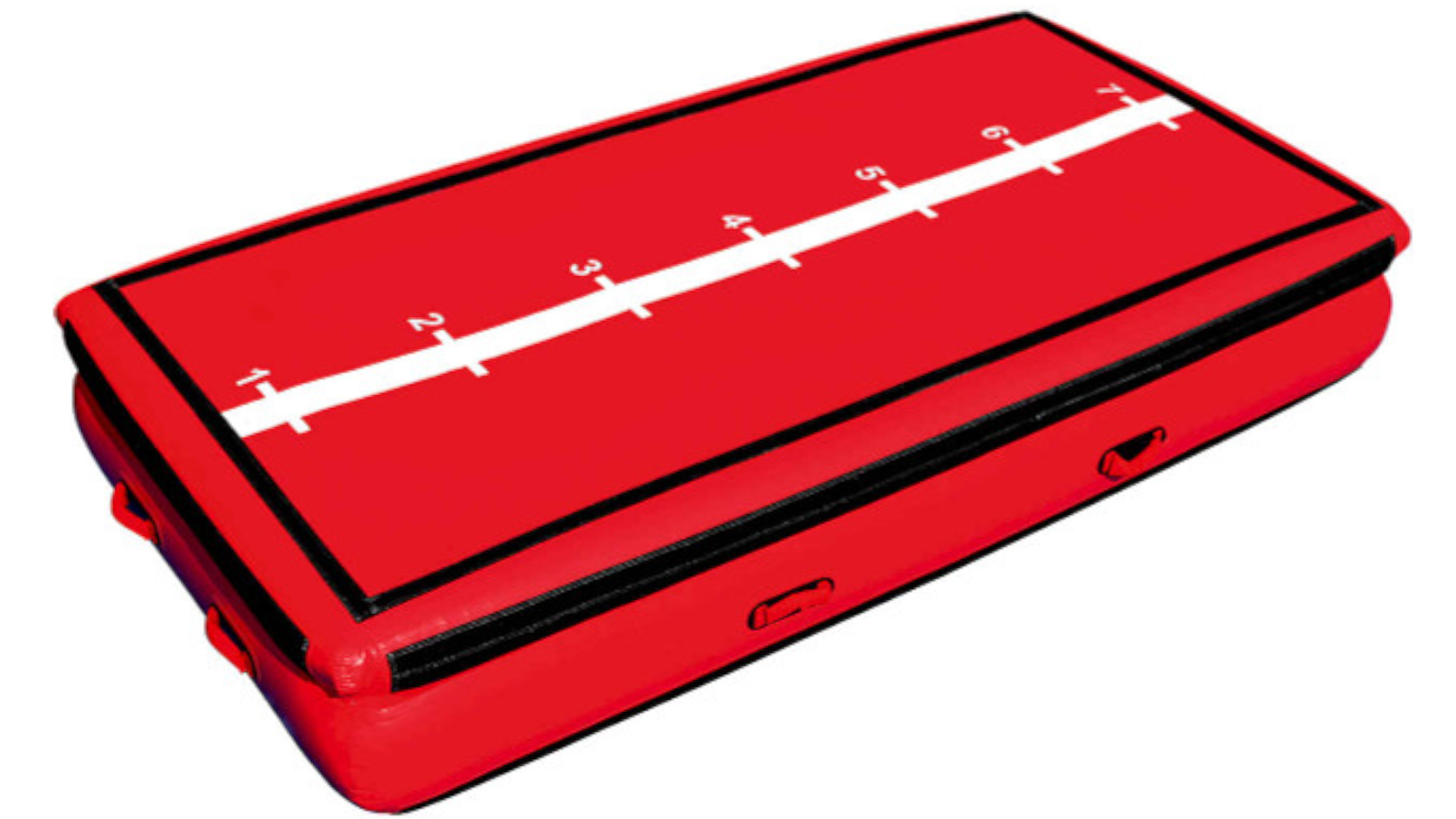 The Air Platform Mat is an air-filled product where both sides, top and bottom, can be used for a variety of skills and drills. It can be used vinyl-side up where a flat surface is desired or hole-side up where the three holes are useful.