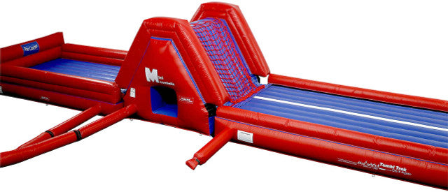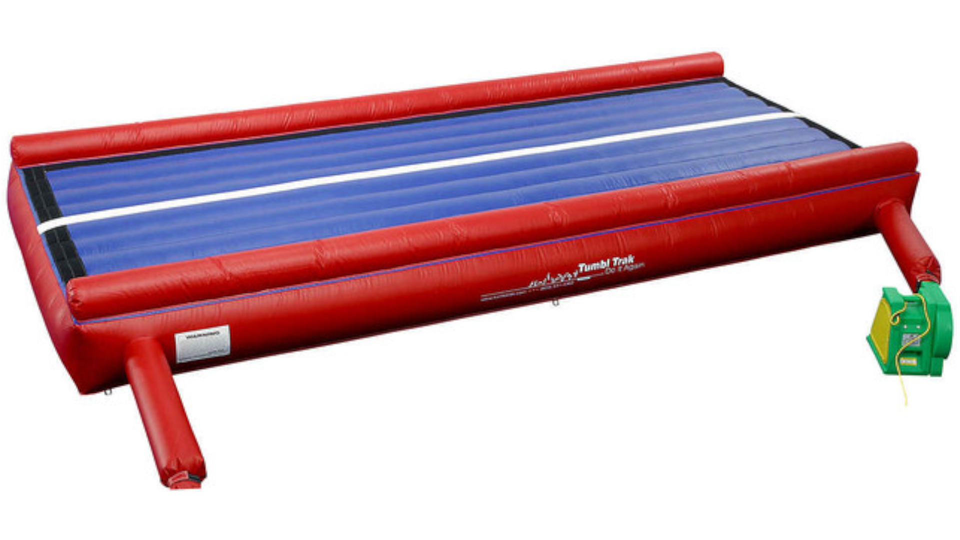 The Air Trak is ideal alternative to traditional spring floors or tumbling tracks. They are portable and do not require permanent space. The Air Trak runs from a 2.0 HP high output, constant flow blower (included in price) and takes less than 30 seconds to inflate and 5 minutes to deflate. Add-on pieces include Catcher (for soft landings or an above-ground pit) and Mini Mountain (a backstop for tumbling or for fun climbing and tunneling, especially for birthday parties).