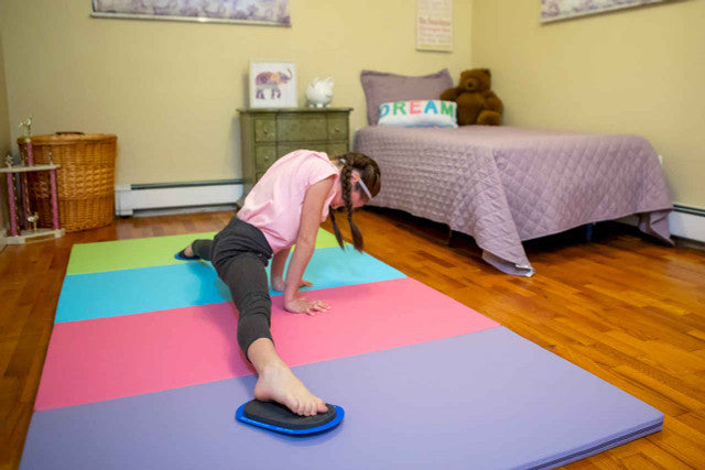 Similar to slippery furniture movers, Conditioning Sliders have become a staple item for coaches and gymnasts looking to incorporate creative ways to improve strength and flexibility and expand your current slider routine.