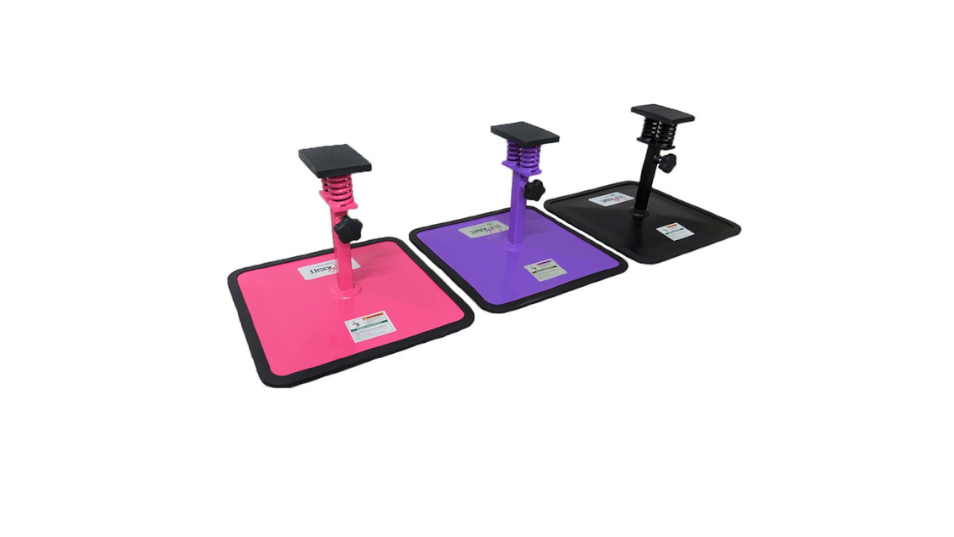The Fly Right is a personal stunt stand that allows a flyer to fine tune stunts and balance at home! It uses a gentle spring action that allows the flyer to learn body control and air awareness when working body positions for various stunts or stunt sequences. such as libertys, heel stretches, scorpions, arabesques, bow-and-arrows. The moving spring creates a realistic feel under the flyer's foot. Raise or lower the platform using the spring loaded D-2 knob to adjust the height according to the athletes confidence. Durably made with heavy steel construction yet compact enough to store away in a closet when not in use.