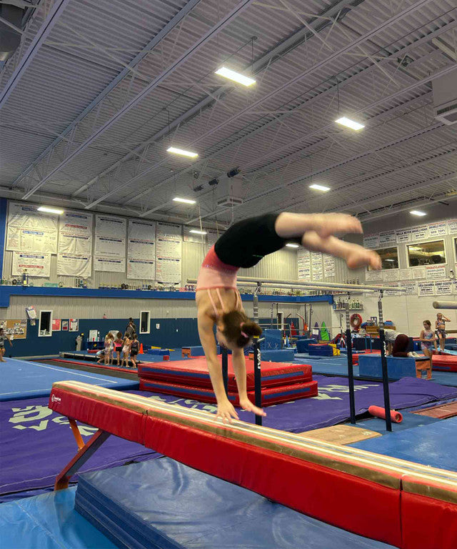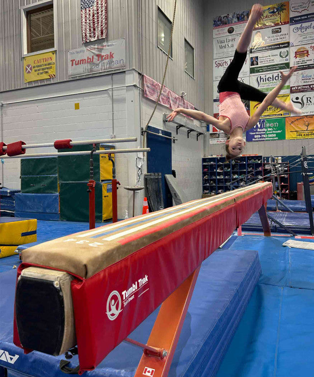 When it’s time to take skills to the high beam, the 16-foot Laser Beam Pad makes transitions easier. Just like our popular Laser Beam, this 7-inch wide foam pad has lines and numbers for visual cueing that follows the balance strategy of Master Coach Leonard Isaacs. The white lines are 4-inches wide to keep athletes visually on target to transfer skills to the competitive beam surface.