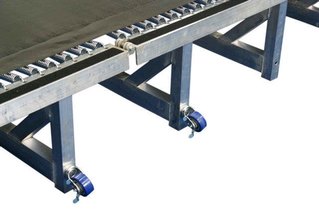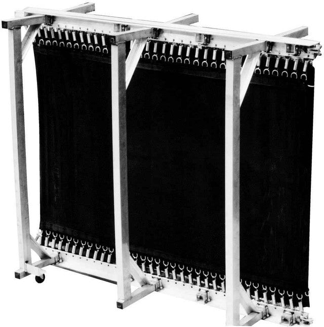 - Unit features folding hinges and casters for easier transport and storage. The 15-foot and 20-foot units fold in half. The 30-foot unit folds in from both edges down to a total length of 15-feet.