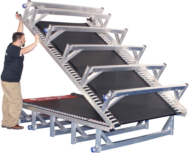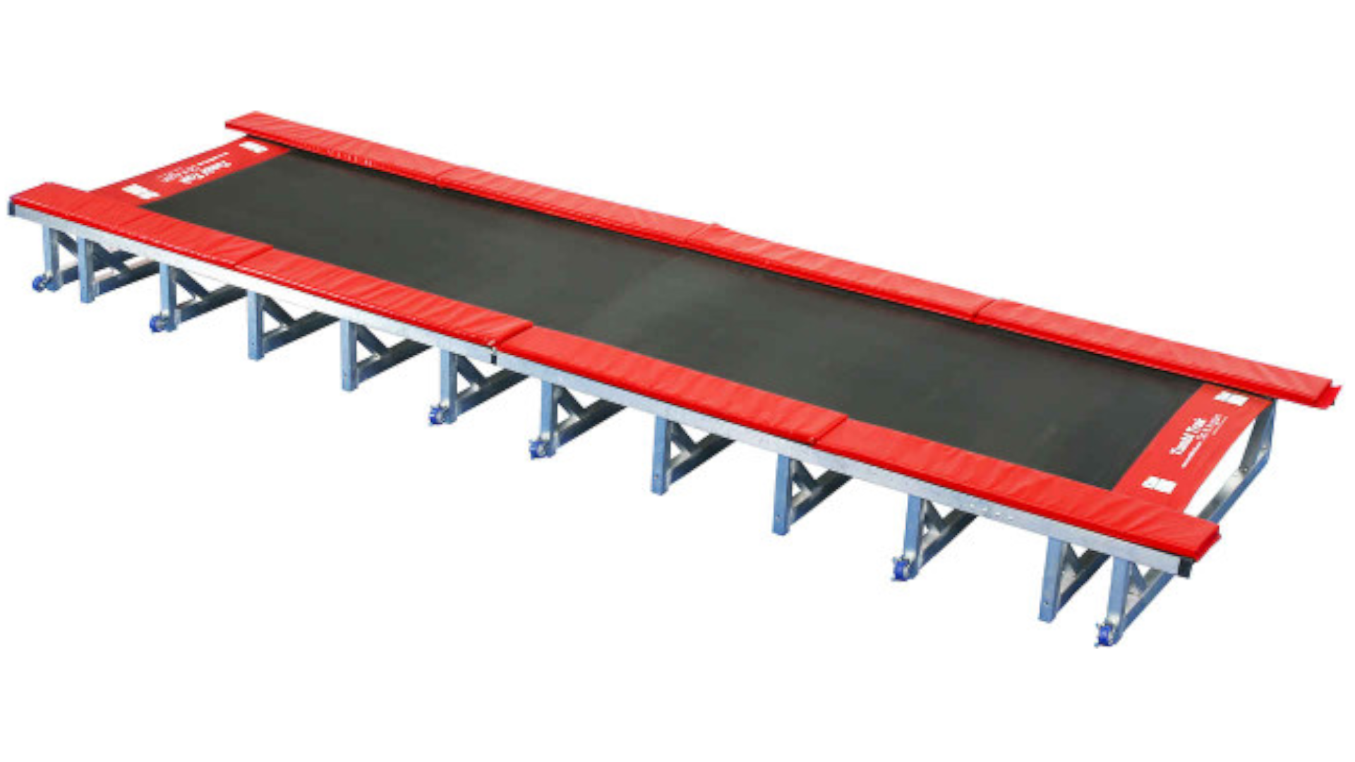 The Porta Trak is useful for gyms that put away equipment each night, small gym clubs with space constraints, city recreations, YMCA's, exhibition teams and mobile programs. It's frame is made of aluminum and weighs about half as much as the Original Tumbl Trak™, so it can easily be folded and wheeled away.
