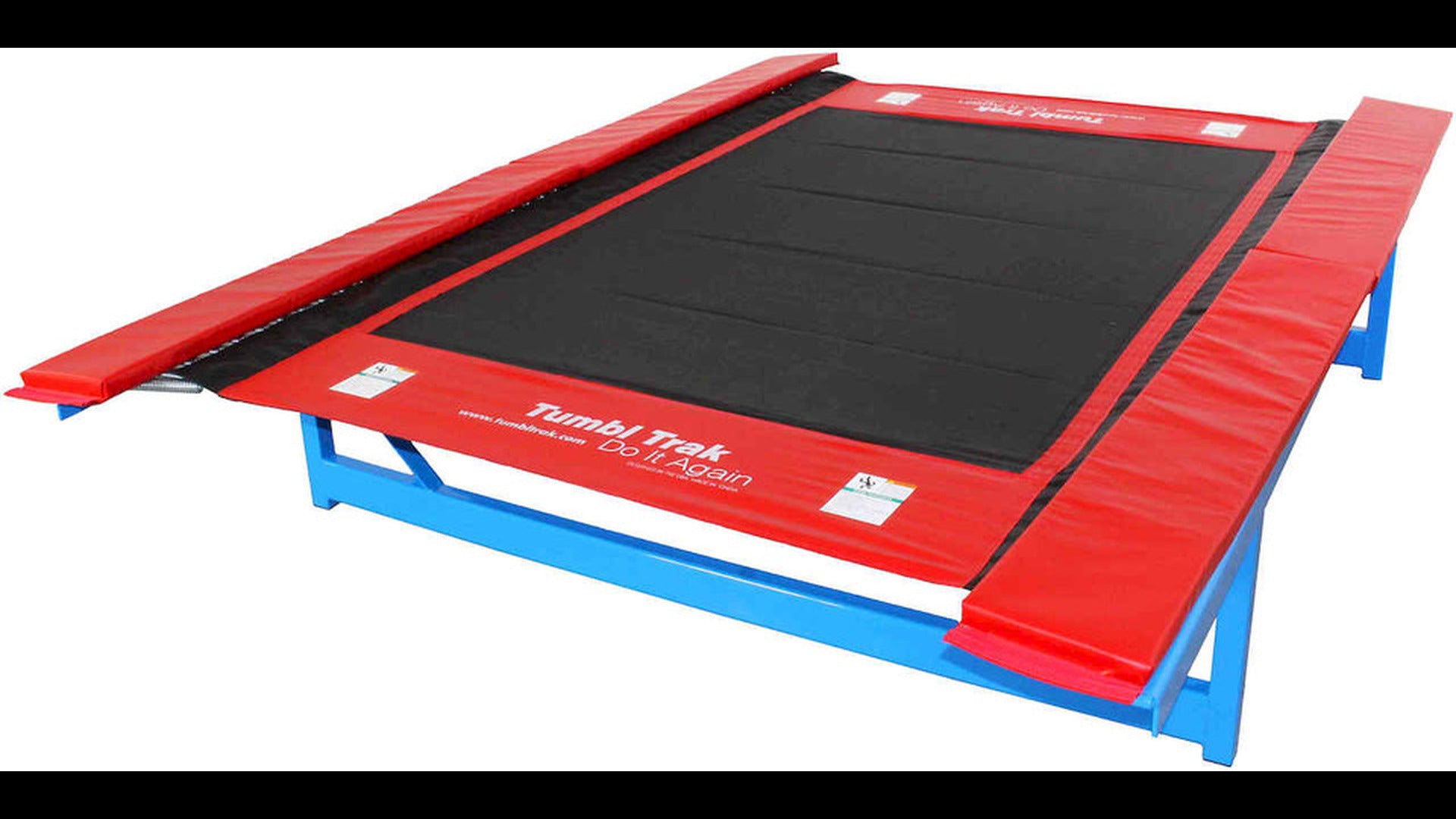 - Useful loop Velcro strip along the edge of the bed for adding attachments like the Tumbl Tape to measure and lengthen tumbling skills.